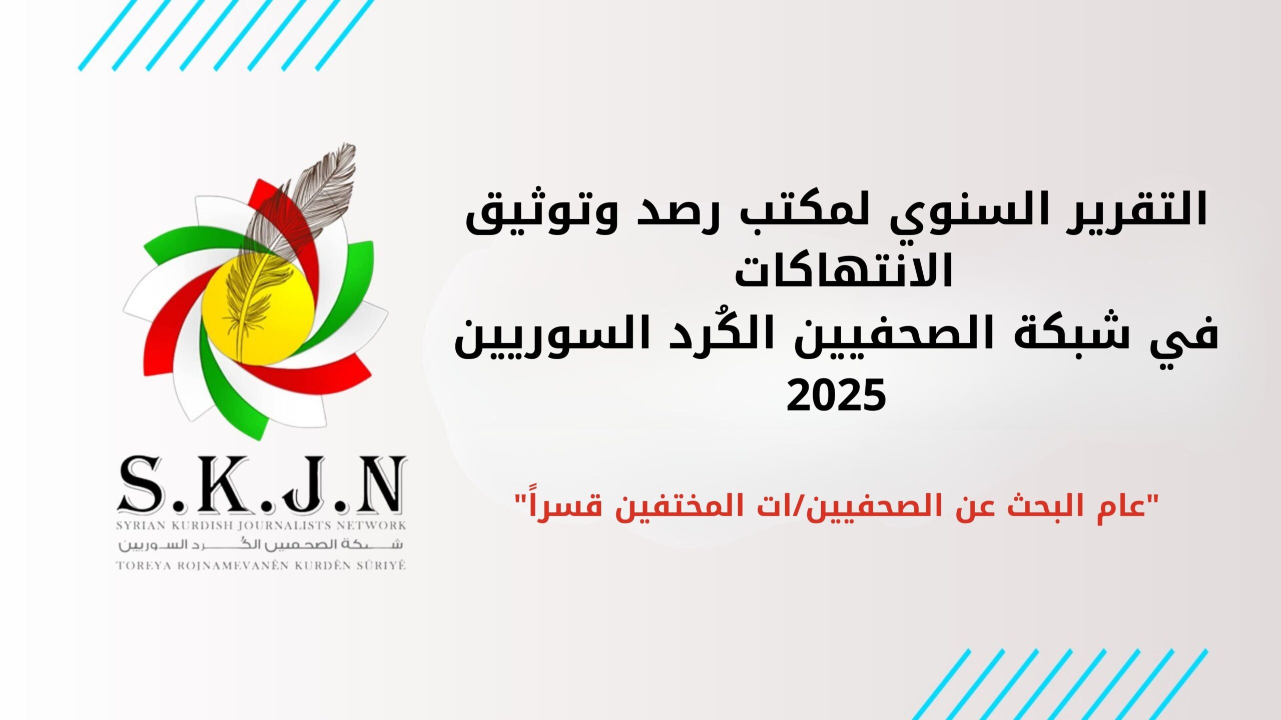 على غرار كل سنة، أصدرت شبكة الصحفيين الكُرد السوريين، عبر مركز الحريات ومكتب رصد وتوثيق الانتهاكات، تقريرها السنوي الذي يمتد من نهاية كانون الأول 2024 إلى نهاية كانون الأول 2025، والذي يوثق واقع حرية الصحافة في سوريا، ويرصد الانتهاكات المرتكبة بحق الصحفيين/ات والعاملين/ات في المجال الإعلامي خلال عامٍ اتسم بتحولات سياسية وأمنية عميقة، دون أن ينعكس ذلك إيجاباً على بيئة العمل الصحفي، أو احترام أخلاقيات المهنة من قبل الصحفيين/ات أنفسهم.
